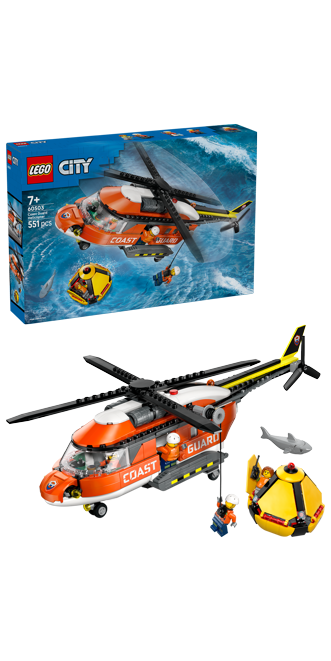 - CO NAJDETE V KRABICI – Vše, co děti potřebují k sestavení detailní hračky v podobě záchranné helikoptéry a záchranné kapsle, a navíc minifigurku pilota, civilisty a 2 členů pobřežní hlídky a figurku žraloka